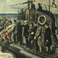 - Una commovente cerimonia in pieno Oceano. Nel quarto anniversario dell'indimenticabile delitto, dal ponte del sommergibile tedesco "UC97", ora americano, una ghirlanda viene lanciata nel punto in cui fu affondato il "Lusitania"