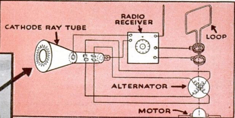 A NEW DIRECTION FINDER employing a cathode-ray oscilloscope has been developed for planes by Donald G. Little, of Baltimore. As the loop antenna revolves, a circular wave pattern appears on the oscilloscope screen, which is calibrated to 360 degrees. When radio signals begin to come in, a depression appears in the pattern to indicate the direction from which they are being sent.