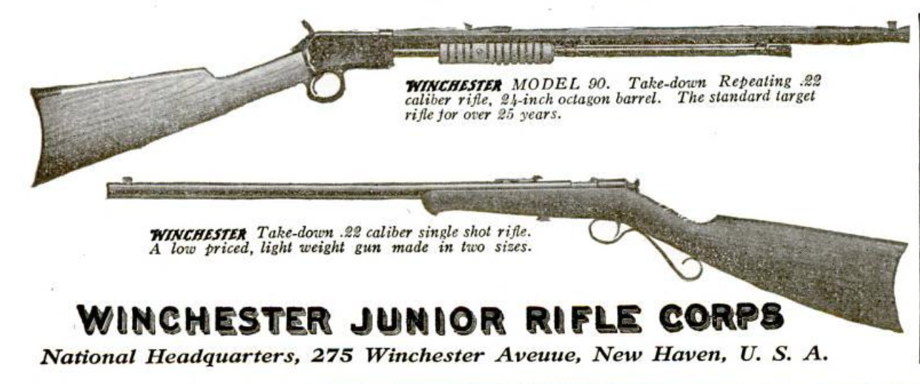 Membership in the W.J.R.C. covers the entire United States. There is hardly a town now that has not at least a small “Unit” where boys are learning to become expert riflemen and are competing among themselves for the famous Winchester Marksman, Sharpshooter and Expert Rifleman Medals.
