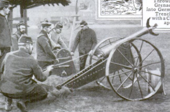 Caption: "French gun used in clearing barbed wire entanglements. A large hook with cable attached is fired into the network and then drawn back".
