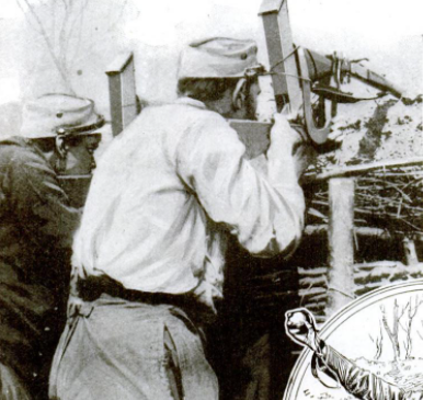 Caption: "The use of periscopes in connection with rifles is a new development in trench warfare peculiar to modern fighting. This shows how French soldiers are able to snipe off the enemy without exposing any part of their bodies to a return fire.The rifles are supplied with auxiliary stocks and periscopes which allow the soldiers using them to remain completely out of sight while shooting".
