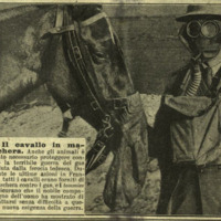 Anche gli animali è stato necessario proteggere contro la terribile guerra dei gas voluta dalla ferocia tedesca. Durante le ultime azioni in Francia tutti i cavalli erano forniti di maschera contro i gas, ei tommies assicurano che il nobile compa-pagno dell'uomo ha mostrato di adattarsi senza difficoltà a questa nuova esigenza della guerra.