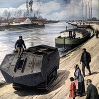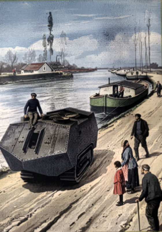 - La fine pacifica di una formidabile macchina da guerra. I "tanks" ora rimorchiano barconi lungo i canali di Francia