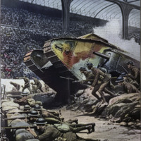 - Una pittoresca riproduzione della guerra a Londra. Un attacco di "tanks, durante il Torneo navale-militare e aereo svoltosi all'Olympia, alla presenza dei Sovrani d'Inghilterra e di Joffre.
