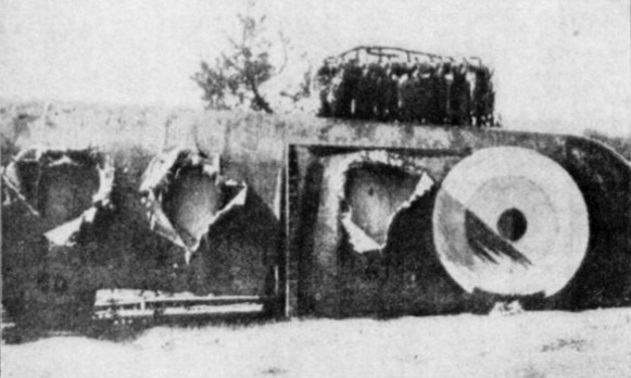 Effet d'un obus explosif Madsen de 20 mm sur un moteur d'avion.png