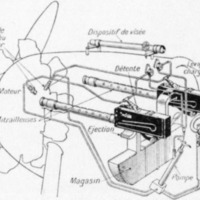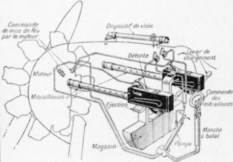 Schéma de montage d'une mitrailleuse commandée par le moteur et tirant à travers l'hélice.png