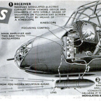 SEEING THROUGH FOG is made possible for pilots by a novel application of television principles. A viewing device slung under the nose of the plane picks up fog-piercing infrared rays which are not visible to the human eye. An iconoscope translates this ghost image into electrical impulses, which are amplified and passed on to a receiving unit where they are converted into a visible image on a fluorescent screen. In addition to removing the hazard of running into a mist-shrouded mountain, the device would assist in landings. Harold A. Adams, of Bakersfield, Calif., is the inventor.