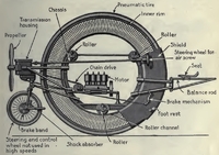 Il “monociclo da trincea” fu brevettato negli Stati Uniti come un (improbabile) veicolo da corsa. I redattori di Popular Science Monthly, ben consapevoli del valore commerciale della guerra europea, gli attribuirono un compito militare (staffetta portaordini) che l’invenzione difficilmente avrebbe potuto svolgere: le sue sottili ruote si sarebbero impantanate nel fango della terra di nessuno; le sue dimensioni lo avrebbero reso un facile bersaglio per il fuoco nemico.