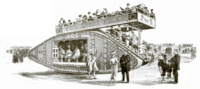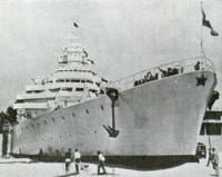 Sulla terraferma era difficile esporre tecnologie navali, ma si trovarono delle soluzioni per aggirare il problema. A questo proposito, «Popular Mechanics» (1939) riporta che in Italia si arrivò a realizzare «una nave da guerra a grandezza naturale che non bagnerà mai la prua in mare». E questo non fu un caso isolato. Infatti, in maniera simile, in Germania si esibì «un grande modello dell’incrociatore “Hindenburg”», in cui «Dettagli come torrette, cannoni, ancore e torri di osservazione erano fedelmente riprodotti in scala» («Popular Mechanics», 1930). Anche negli Stati Uniti si espose un modello di corazzata, che fungeva da attrazione ma, contemporaneamente, anche da ufficio per la vendita di «cartelle del Prestito» («La Domenica del Corriere», 1918).